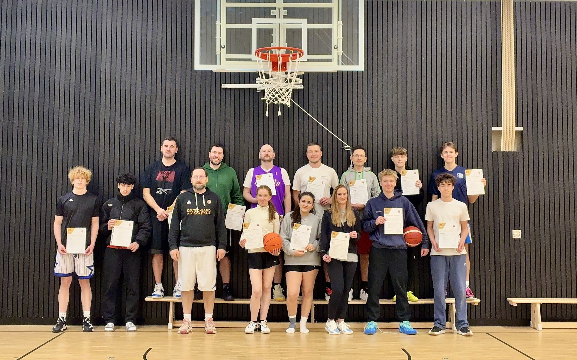 Alle 14 Teilnehmenden hatten zuvor den theoretischen Online‑Lehrgang erfolgreich abgeschlossen und konnten nun ihr Wissen in vielfältigen Übungs- und Spielsituationen anwenden. Im Mittelpunkt des Präsenztages standen praxisnahe Trainingsformen für den Minibasketball.